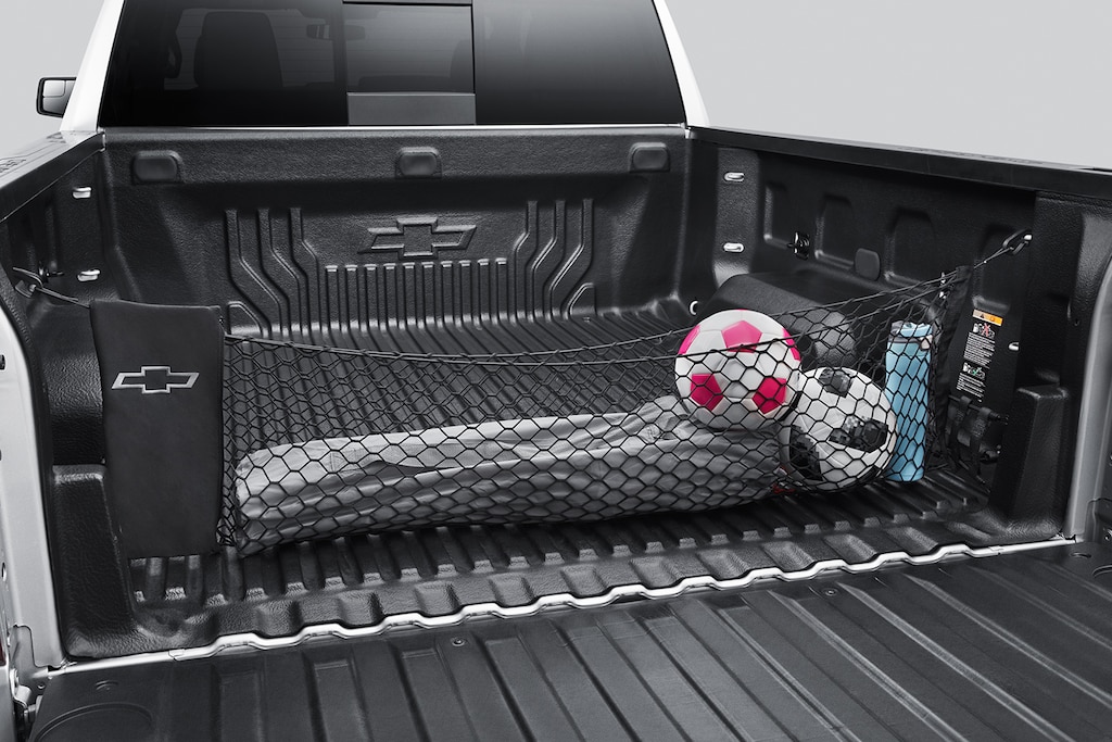 Bed liner con emblema Chevrolet y compartimientos laterales integrados